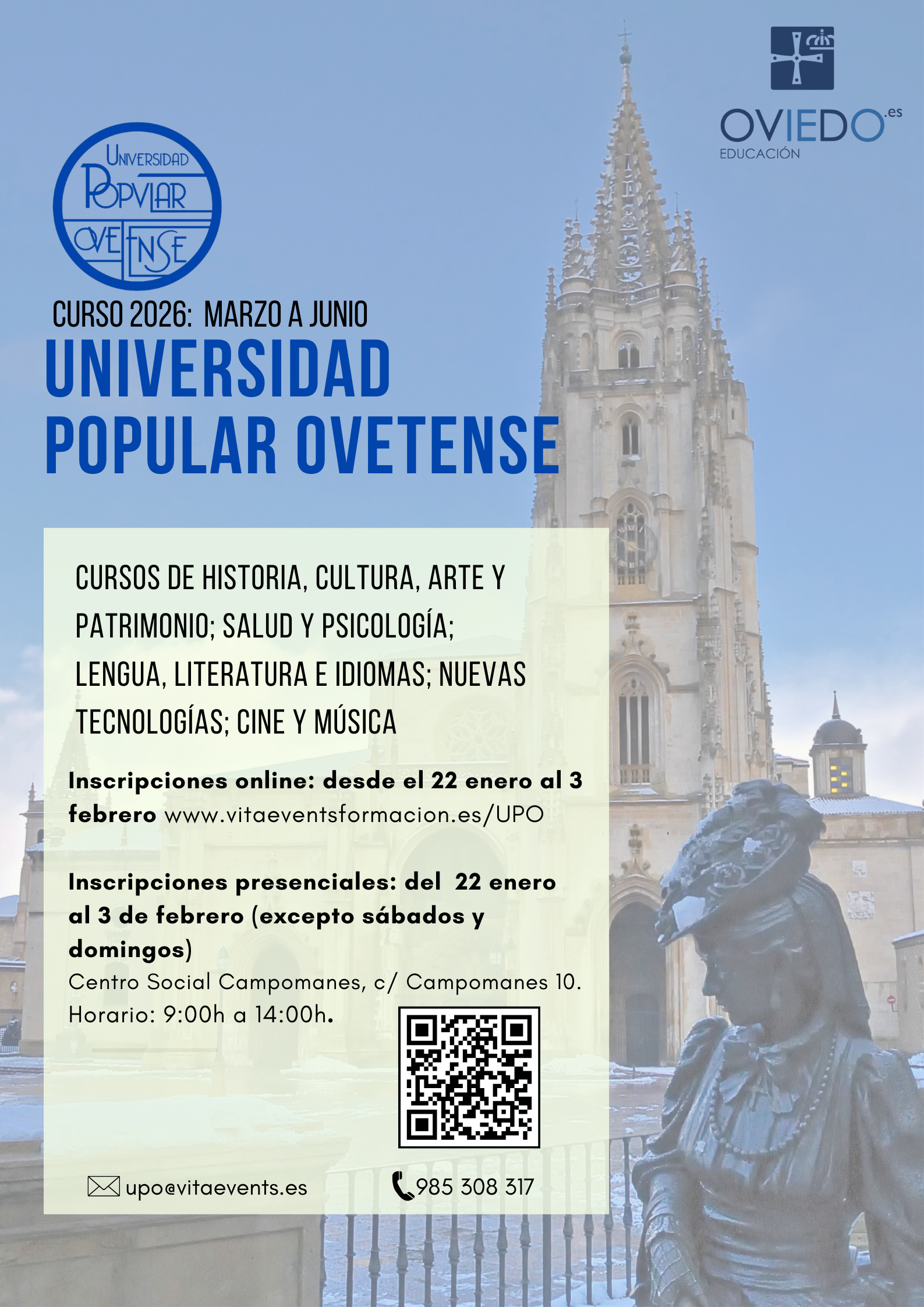 Ante cualquier duda, llame al 985 308 317 para hablar con Atención al Cliente de VitaEvents. También puede enviarnos un email a upo_arroba_vitaevents.es