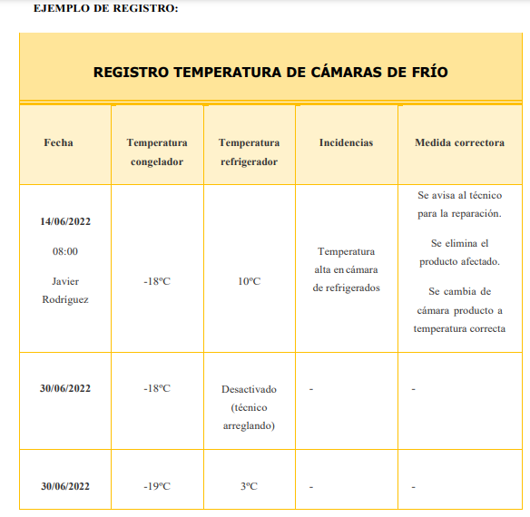 e) Medidas correctoras: pese a hacerlo todo bien, puede que aparezca un peligro, y debemos saber qué hacer en este caso, y cómo eliminarlo lo antes posible. Ej.: en el almacén de congelados vemos que la temperatura está a -10ºC, no es correcta, y los alimentos están mal